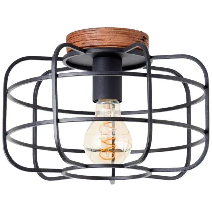 Brilliant Gwen Plafondlamp Metaal Hout Zwart | 300mm - Geschikt voor 1x E27