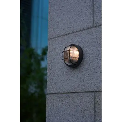 Beschrijving D'Lite Wandlamp Ecco Zwart Rond | IP54 - Geschikt voor 1x E27
