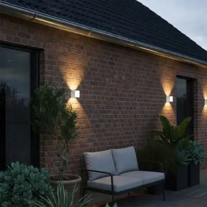 Ben je specifiek op zoek naar een LED wandlamp die je buiten kunt gebruiken? Kijk dan eerst of de IP waarde van het armatuur dat je wil kopen de juiste IP waarde heeft. Hoe dat zit? LED wandlampen met een IP44 waarde (spatwaterdicht) of hoger kun je buiten ophangen. Wil je een LED wandarmatuur ergens in de buitenlucht hangen en waar direct neerslag op het armatuur valt? Kies dan voor een LED wandlamp met een IP65 waarde (spat- en waterdicht) of hoger. Ook speelt de IK waarde een rol bij buitenverlichting. Dit is de mate waarin een armatuur bestand is tegen schokken en vandalisme.