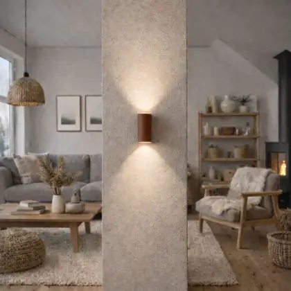 Beschrijving D'Lite Wandlamp Vossem Metaal Roestig Up & Down| IP54 - Geschikt voor 2x GU10