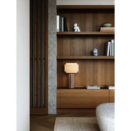 Beschrijving DFTP by Nordlux Tafellamp Takai Marmer en Textiel Beige | Geschikt voor 1x E27