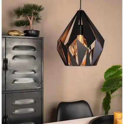 Beschrijving Eglo Hanglamp Carlton 1 Staal Zwart | IP20 - Geschikt voor 1x E27