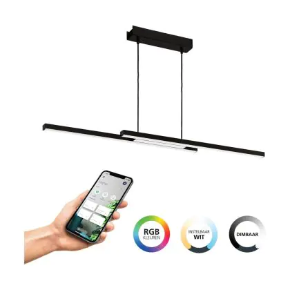 Eglo Hanglamp Fraioli-Z Aluminium Zwart 17W 2400lm - 827-865 Afstembaar Wit + RGB | IP20 - Zigbee Dimbaar