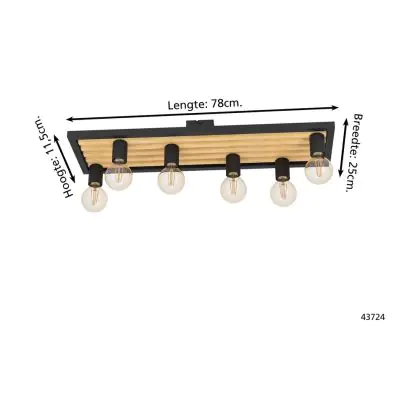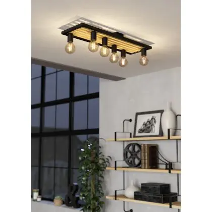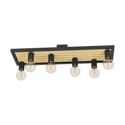 Beschrijving Eglo Plafondlamp Consett Staal Hout Zwart Bruin | IP20 - Geschikt voor 6x E27