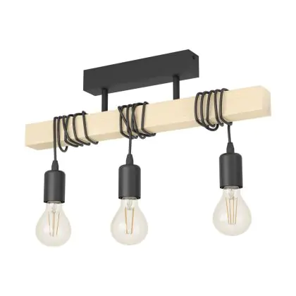 Beschrijving Eglo Plafondlamp Townshend Staal Hout Zwart Bruin | IP20 - Geschikt voor 3x E27