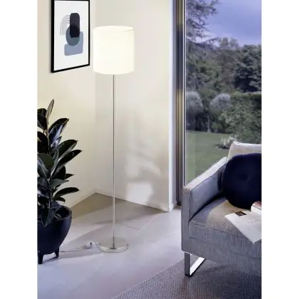 Beschrijving Eglo Vloerlamp Pasteri Staal Satijn Nikkel Wit | IP20 - Geschikt voor 1x E27