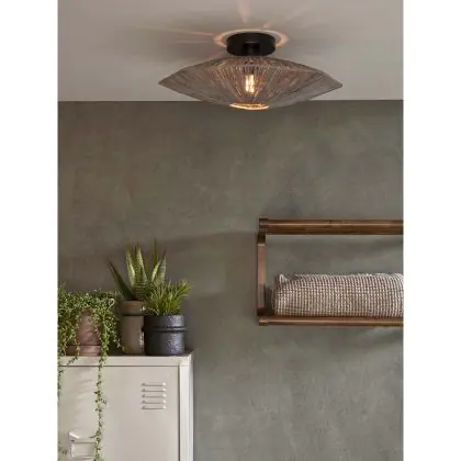 Beschrijving Good&Mojo Plafondlamp Panama Raffia Grijs | Geschikt voor 1x E27