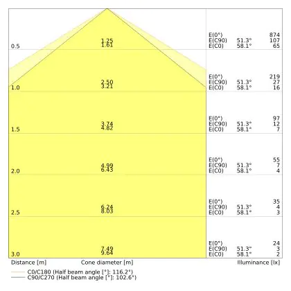 ![]() De kleurcode is een combinatie van de kleurweergave (CRI) en lichtkleur (Kelvin). Het eerste getal is de kleurweergave (1 = zeer slechte kleurweergave, 9 = maximale kleurechtheid). Het tweede en derde cijfer betreft de lichtkleur. Een lamp met kleurcode 830 heeft bijvoorbeeld een goede kleurweergave en straalt een warm wit licht uit (3000K), waar een lamp met de kleurcode 940 een uitstekende CRI heeft en een koel wit licht (4000K) uitstraalt. |