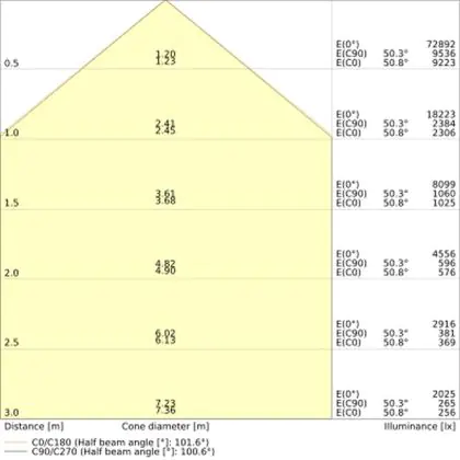 Dit armatuur heeft de kleurtemperatuur . Wat houdt dit eigenlijk in? Lichtkleuren bepalen de sfeer in een ruimte. Zo is warm wit (3000K) geschikt voor algemene ruimtes en stallen, koel wit (4000K) voor stallen, magazijnen, loodsen en productiehallen, en daglicht wit (6500K) voor productiehallen (detailwerk). Bepaalde omgevingen kunnen verlicht worden met meerdere lichtkleuren. Dit heeft met name te maken met de hoeveelheid natuurlijk daglicht in de ruimte; hoe minder dit is, hoe koeler de lichtkleur keuze. Het licht van deze LED high bay wordt verspreid in een stralingshoek van 110°.