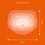 De gradenbundel geeft informatie over hoe breed het licht wordt uitgestraald. Dit zit tussen de 0 en 360 graden (D). Hoe kleiner de hoek, hoe specifieker de lichtbundel is. Over het algemeen is een smalle gradenbundel perfect voor sfeer- of accentverlichting, terwijl een brede gradenbundel ideaal is om grote oppervlaktes te verlichten.