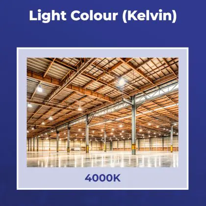 Deze LED High-bay bezit een enorme lichtopbrengst van 16000 lumen! Dit hoge aantal laat zien dat een armatuur zoals deze ook vanaf een grote hoogte nog steeds zijn werk doet. Hang je een High-bay armatuur zoals deze in een ruimte met lagere plafonds, dan is de hoeveelheid licht simpelweg te krachtig en te fel. Met als gevolg dat wanneer mensen in het licht kijken, ze direct worden verblind. Vanaf hoge plafonds (6 tot 14 meter) is dat een ander verhaal. Ook niet onbelangrijk om op te letten is de kleurtemperatuur. Deze is bij dit product: 4000K - Koel Wit. Twijfel je over de juiste kleurtemperatuur voor een grote oppervlakte? Kies dan voor koel wit (4000K). Deze lichtkleur heeft een natuurlijke tint en houdt werknemers in productie-omgevingen alert.