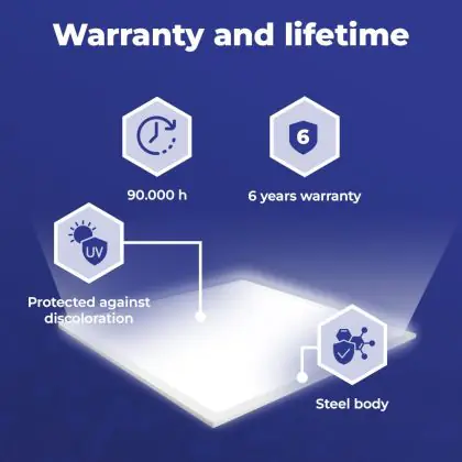 Met de aanschaf van dit LED paneel van 60x60cm maak je in meerdere opzichten een goede keuze. Met een gemiddelde levensduur van 90000 uur ben je verzekerd van een duurzaam product, dat vele jaren optimaal blijft presteren. Bovendien draag je een steentje bij aan een schoner milieu, want LED verlichting vermindert de C02 uitstoot en bevat geen giftige stoffen zoals kwik.