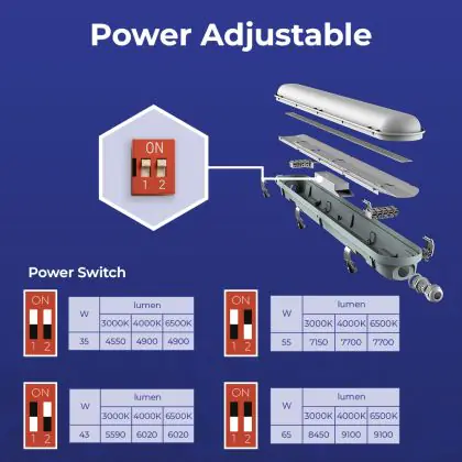 Denk ook goed na over het kiezen van de juiste kleurtemperatuur. Deze LED montagebalk heeft als kleurtemperatuur: 3000K - 4000K - 6500K CCT. Voor ruimtes waar weinig tot geen natuurlijk daglicht aanwezig is, raden wij de kleurtemperatuur 6500 Kelvin (daglicht wit) aan. Vooral voor dieren in een stal is dit een prettige lichtkleur. 4000 Kelvin (koel wit) is qua tint ook nog steeds fris en natuurlijk van aard en past daarom ook in vele (werk)situaties, zoals in een magazijn, bouwmarkt of fabriekshal. 3000 Kelvin (warm wit) is qua licht wat zachter van aard en past daarom vooral in ruimtes zoals een hal, gang, trappenhuis of galerij.