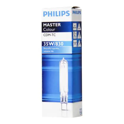 De Philips CDM TC lampen bevatten een UV filter, waardoor weinig verkleuring van de objecten optreedt. De Philips CDM-TC 35W 830 G8.5 (MASTERColour) gasontladingslampen hebben een G8.5 lampvoet. Dit is het beste alternatief voor kwartslampen. Ze hebben een zeer hoge lichtopbrengst en zijn zeer efficiënt.